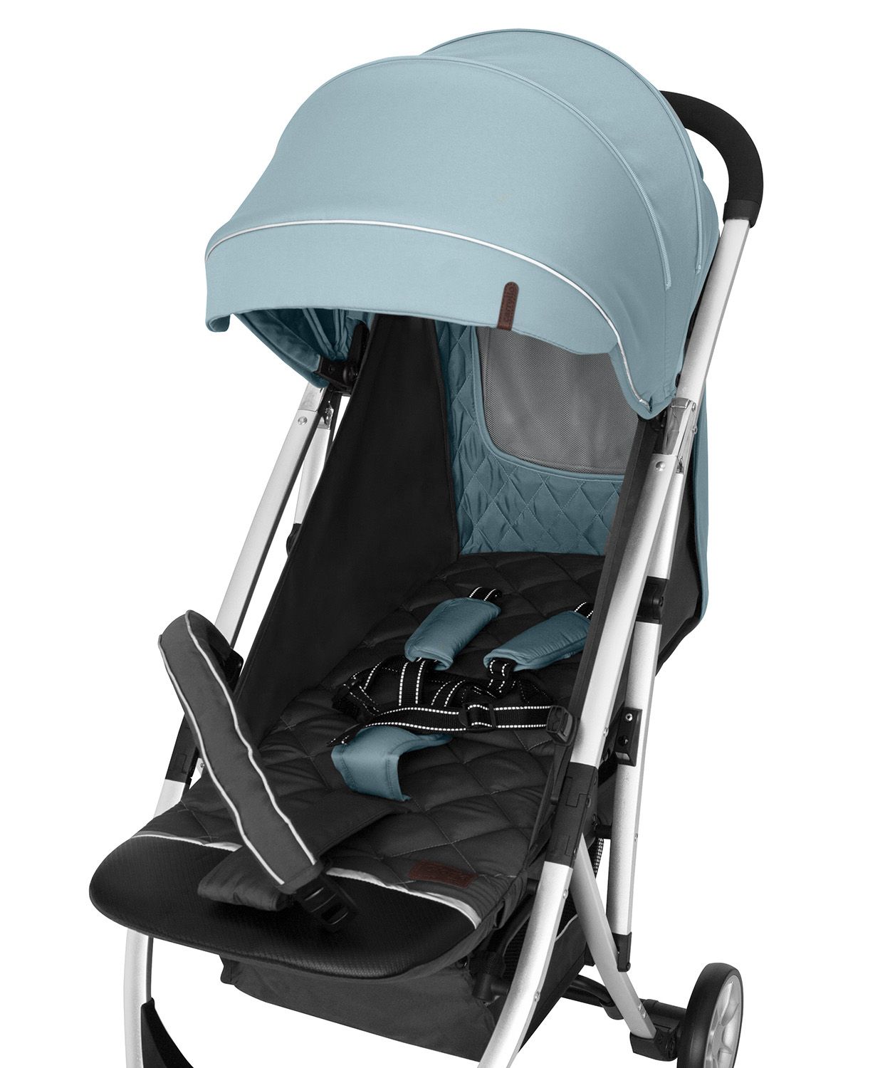 Объемная корзина под сиденьем. 5-точечные ремни безопасности и бампер для комфорта ребенка оснащены мягкими накладками. Обивка коляски изготовлена из качественной плотной ткани, выполненной под лен.