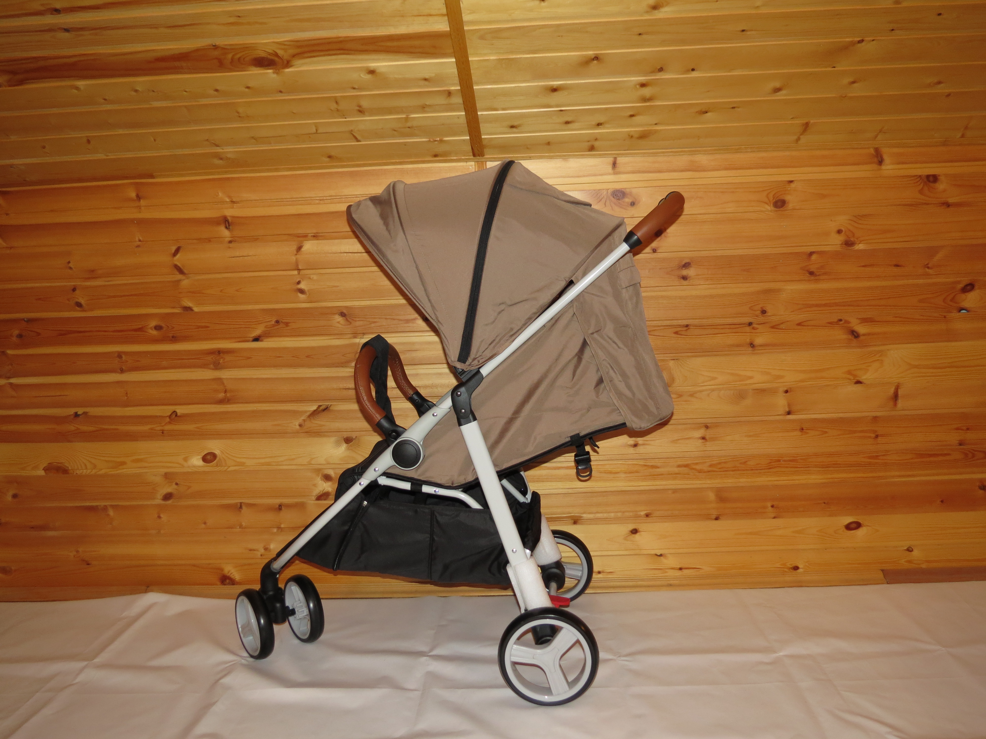 Коляска выполнена из качественных материалов, имеет теплый чехол на ножки и комплектуется дождевиком и москитной сеткой.